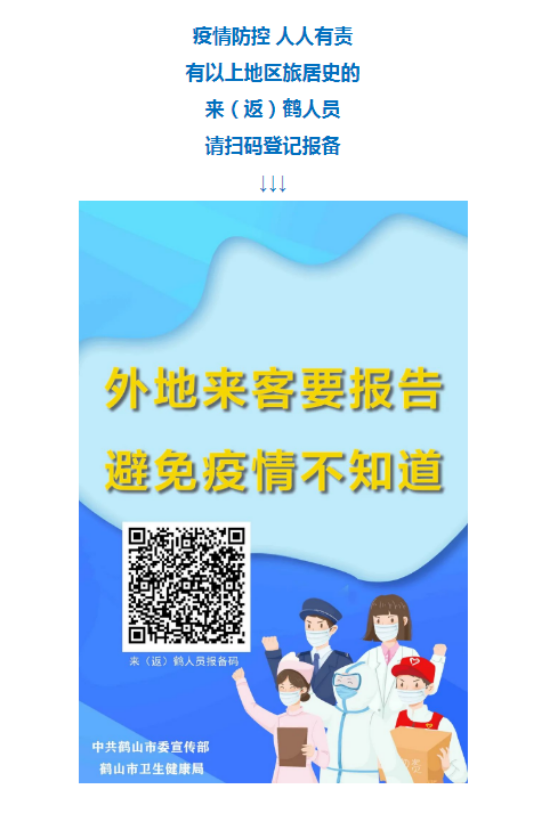 各村(社区)、各厂企、各单位要立即排查上述地区旅居史的来(返)鹤人员,按照要求第一时间上报,分类落实健康管理措施。