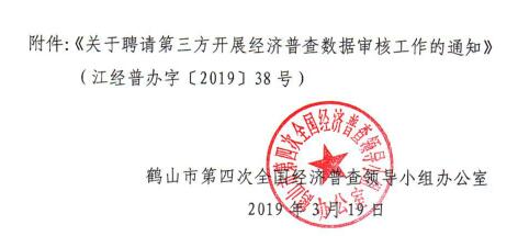 鹤经普办字〔2019〕23号 转发江门市经普办《关于聘请第三方开展经济普查数据审核工作的通知》的通知.pdf