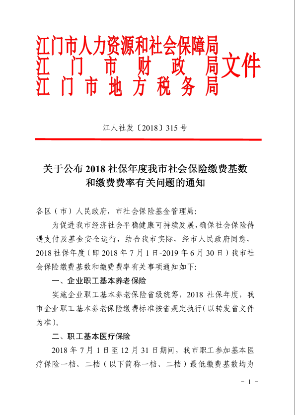 关于公布2018社保年度我市社会保险缴费基数和缴费费率有关问题的通知