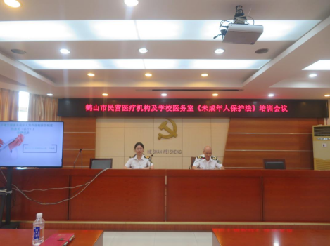为进一步落实依法履行侵害未成年人案件强制报告制度,切实预防未成年人被侵害,及时有效惩治侵害未成年人违法犯罪, 强化医务人员法律意识,市卫生监督所于8月25日召开全市民营医疗机构及学校医务室负责人《未成年人保护法》培训会议。
