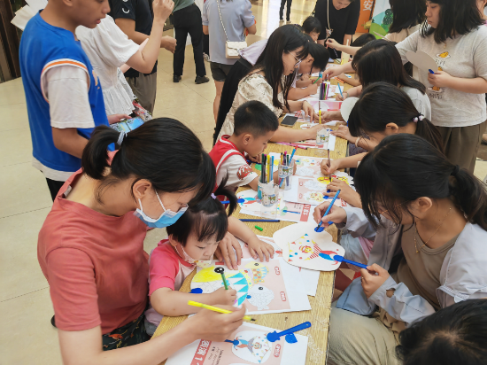活动现场设置了彩绘区,吸引了众多青少年参与。青少年在空白的环保袋、扇子上描绘内心对低碳生活的色彩,少年的一笔一画,描绘对低碳生活的向往和色彩。