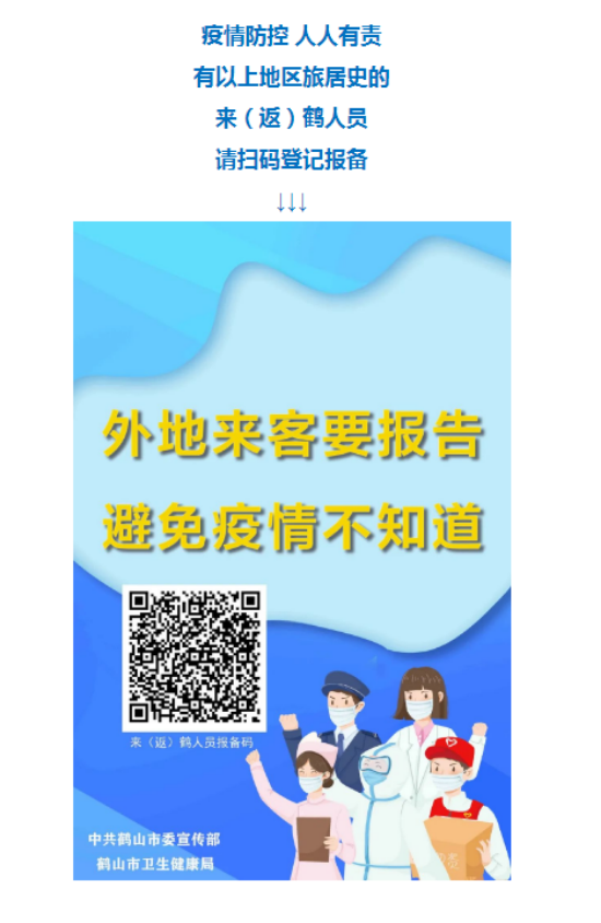 各村(社区)、各厂企、各单位要立即排查上述地区旅居史的来(返)鹤人员,按照要求第一时间上报,分类落实健康管理措施。