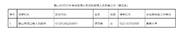 根据《广东省2022年考试录用公务员公告》有关精神,经报名、笔试、面试、体检、考察等程序,源文婷同志具备录用为公务员的资格条件,拟录用为西瓜视频 公务员。根据公务员录用有关规定,现予以公示。