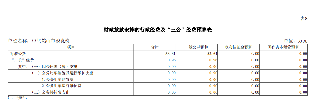 2024年中共西瓜视频 委党校财政划拨安排的行政经费及“三公”经费预算表