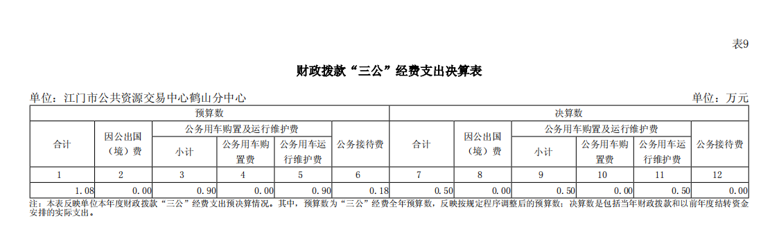 2023年江门市公共资源交易中心鹤山分中心财政拨款“三公”经费支出决算表