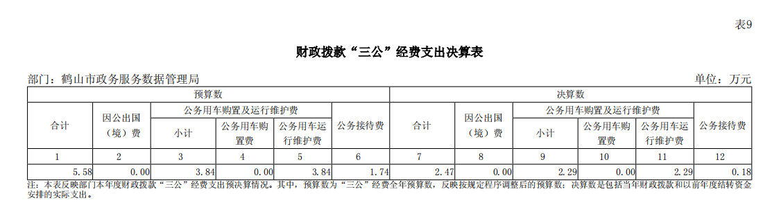 2023年西瓜视频 政务服务数据管理局财政拨款“三公”经费支出决算表