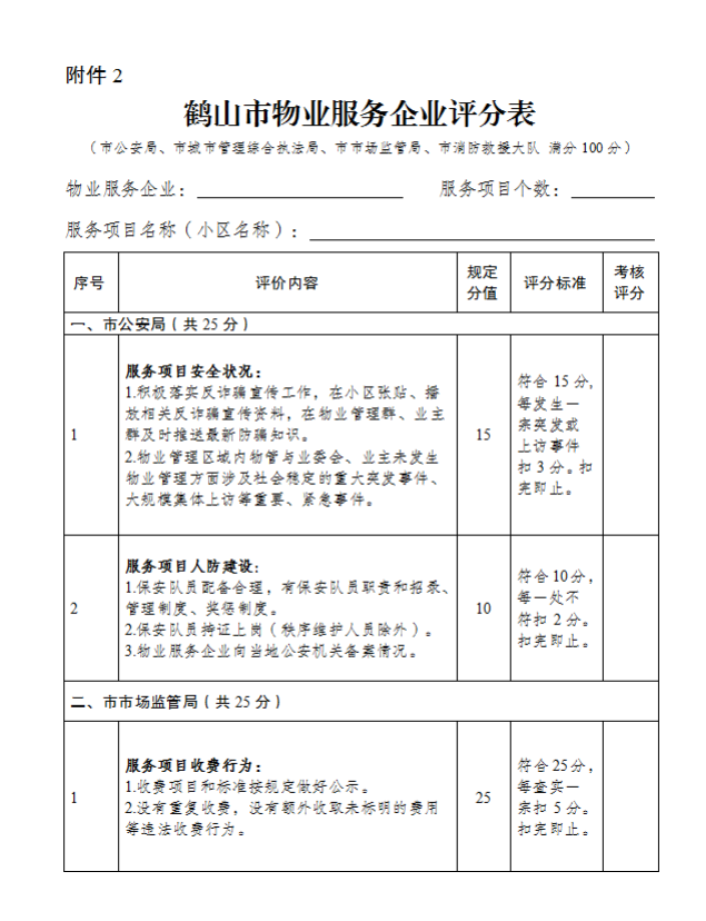 2.西瓜视频 物业服务企业评分表(市公安局、市城市管