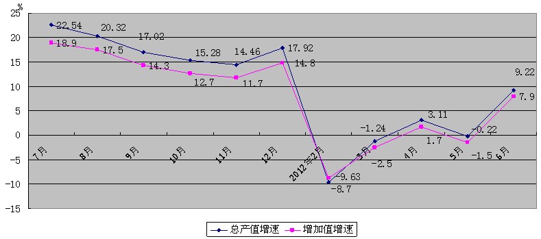 1、规模以上工业总产值、增加值重回正增长区间。1-6月规模以上工业总产值218.88亿元,增长9.22%;工业增加值48.07亿元,增长7.9%。上半年,规模以上工业总产值、增加值增速在出现3个月负增长的困难情况下,经过市委市政府的一系列“稳增长”措施,在上半年完成了工业总产值、增加值保持增长的任务。(附图1)