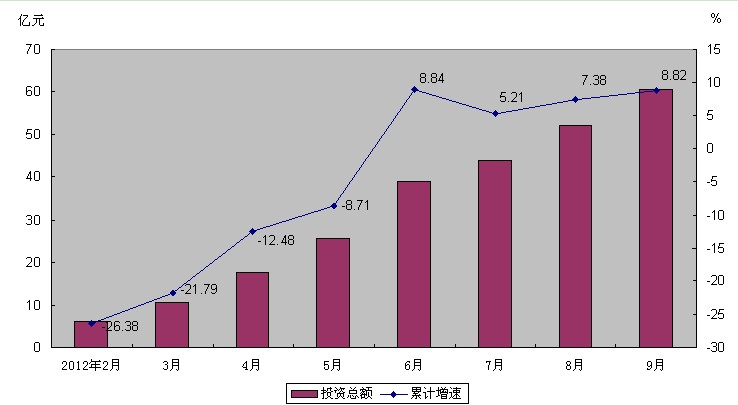 图2:2012年2-9月固定资产投资额和增速图