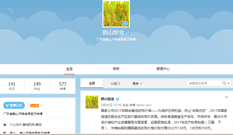 粮食局微信订阅号上发布。