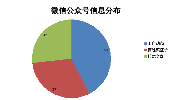 我局政府信息公开渠道分为集约化后的政府网站和微信公众号平台,均由专门负责人员进行更新。2018年度,我局在政府网站共发布信息222条,其中,政府信息公开指南1条、政府信息公开年度报告1条、组织机构12条、西瓜视频公告 28条、工作动态86条、部门预决算5条、其它32条、五公开16条、重点领域信息公开41条;我局在微信公众号发布信息120条,其中工作动态类51条、百姓菜篮子37条、转载文章32条。