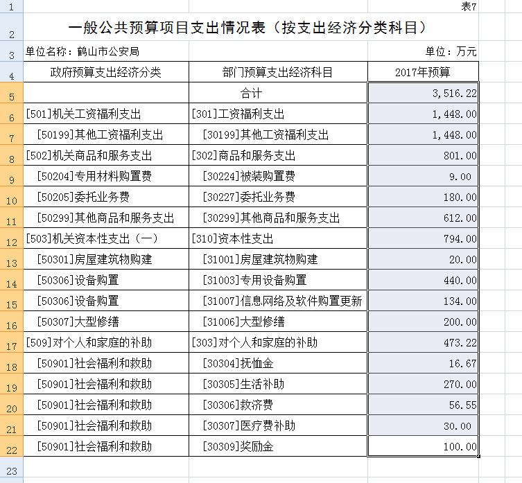 七、一般公共预算项目支出情况表(按支出经济分类科目)