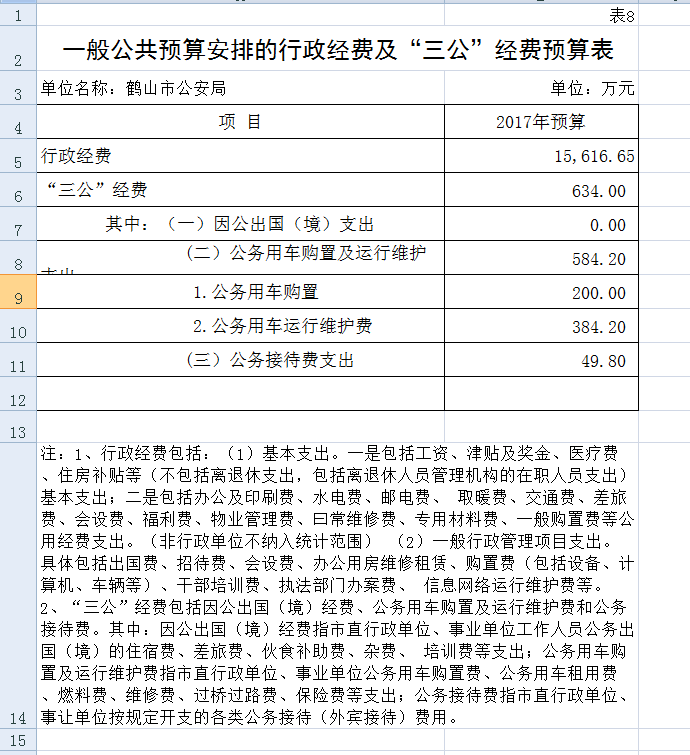 八、一般公共预算安排的行政经费及“三公”经费预算