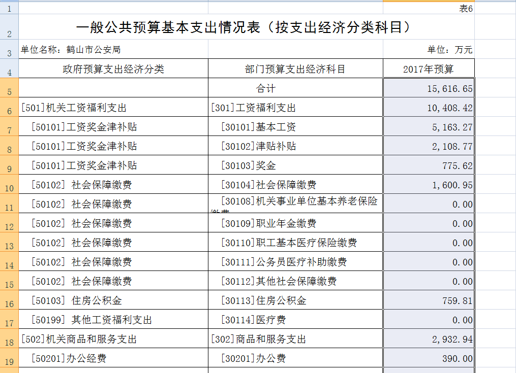 六、一般公共预算基本支出情况表(按支出经济分类科目)