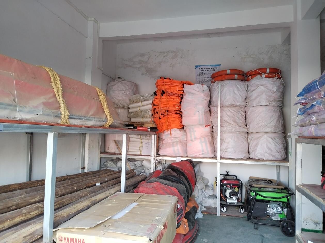 三是检查三防应急物资储备仓库,按市要求配齐防抢险救灾应急物资,包括应急发电机、橡皮艇(冲锋舟或木艇)、救生衣、救生圈、编织袋、应急照明、木桩、铁锹、绳索等。确保物资始终处于良好状态,保障随时应急调用,做到有备无患。