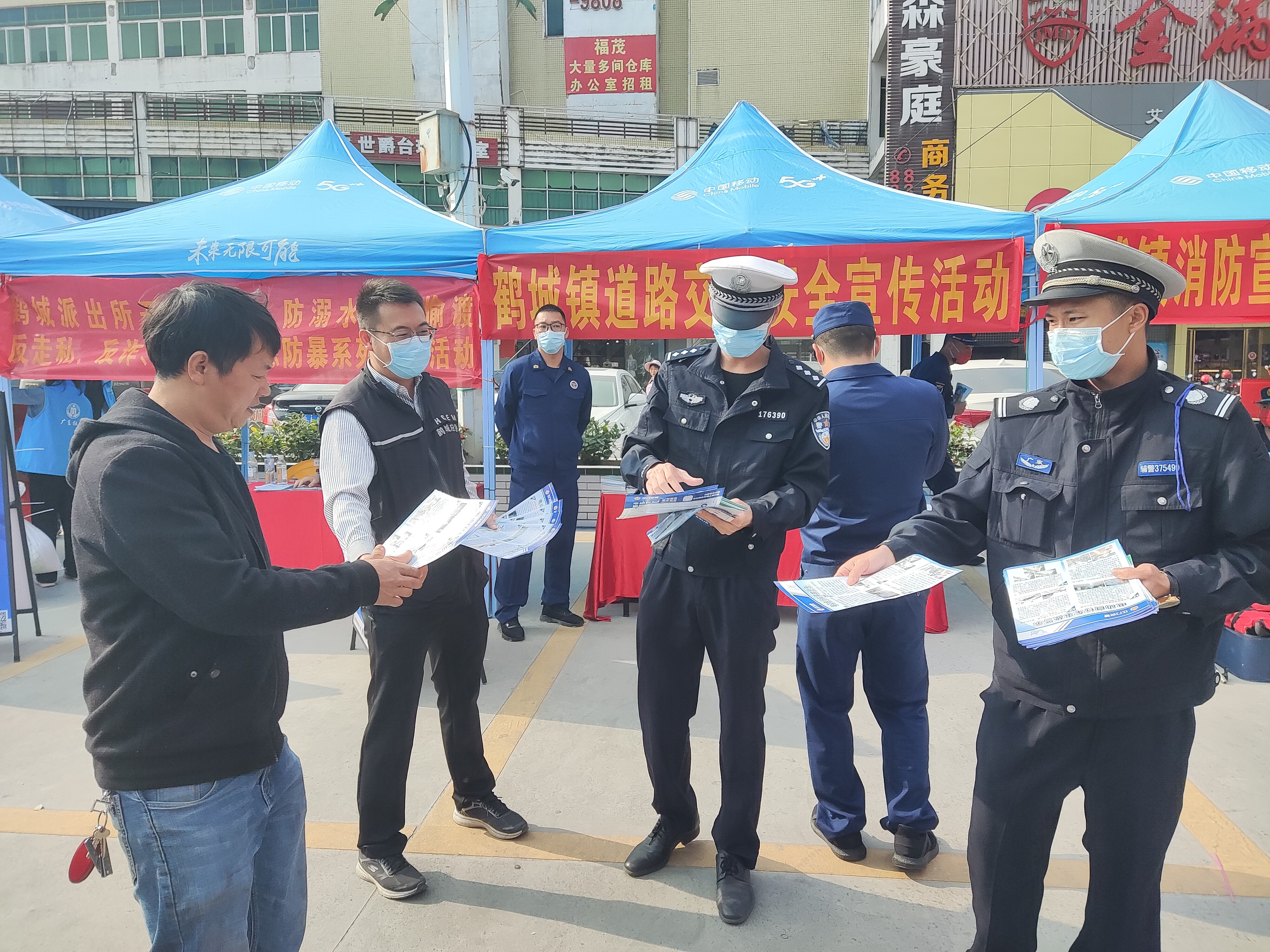 鹤城镇交警四中队、应急办现场通过“面对面”发放交通安全宣传手册、讲解交通安全法律法规等形式向群众宣传交通安全知识,结合典型交通事故案例,把“一盔一带”安全出行、行人在出行中要注意事项以及酒后驾驶、超员超载等交通违法行为,对群众进行了详细讲解。同时,耐心解答了他们提出的一系列关于道路交通安全问题。