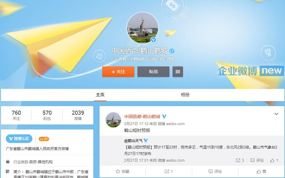 (4)利用鹤城镇官方政务微信、微博对鹤城镇政府官网网站发布的信息进行简化发布,利用微信、微博这两个人脉广泛的平台进一步推进政府信息的推广;