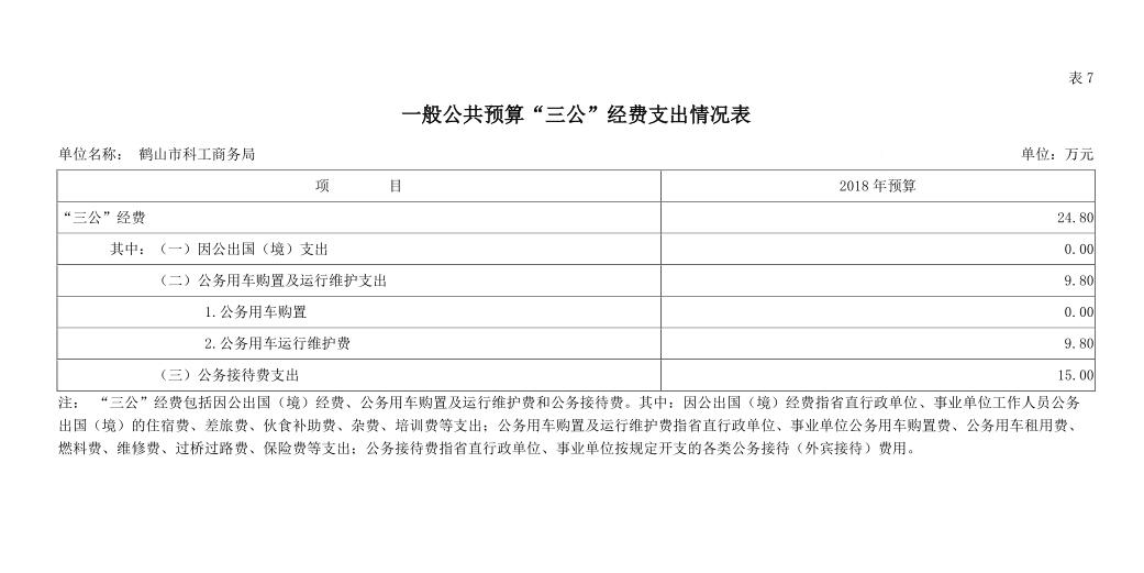 科工商务局2018年公共预算“三公”经费预算
