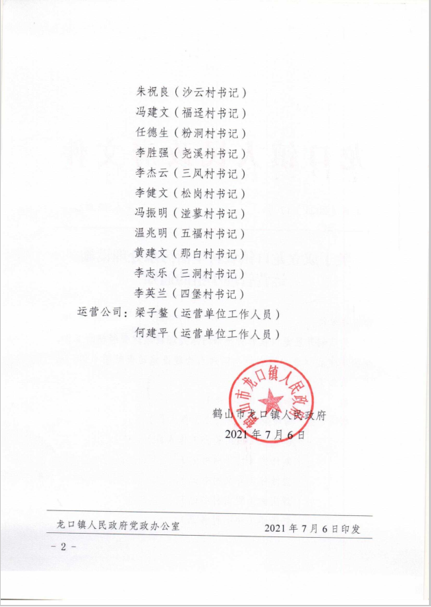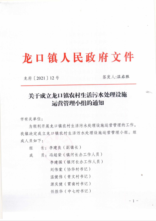 关于成立龙口镇农村生活污水处理设施运营管理小组的通知