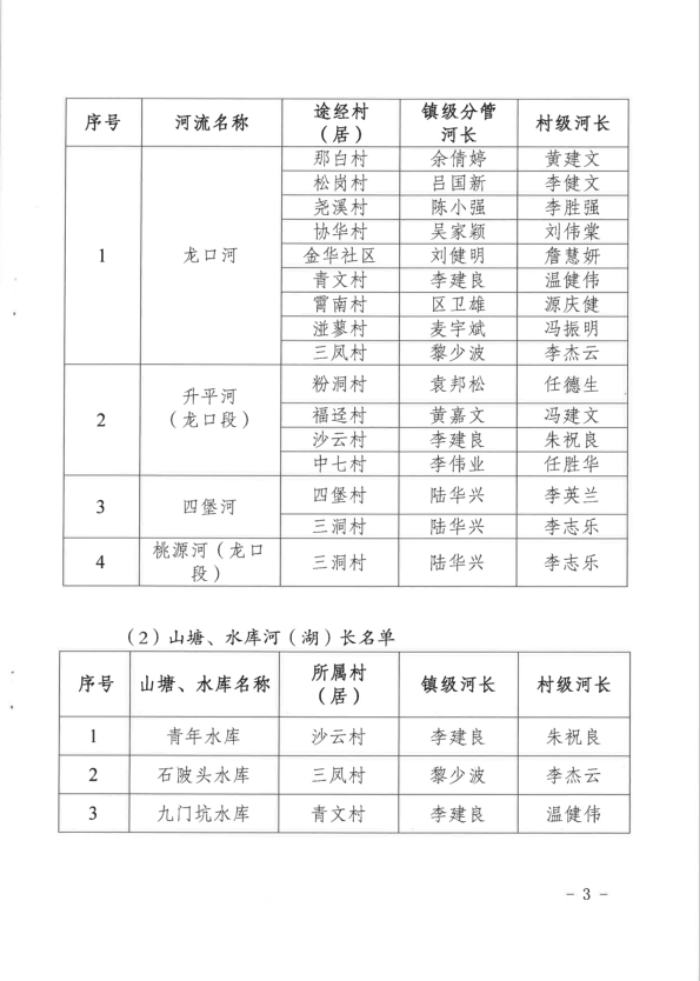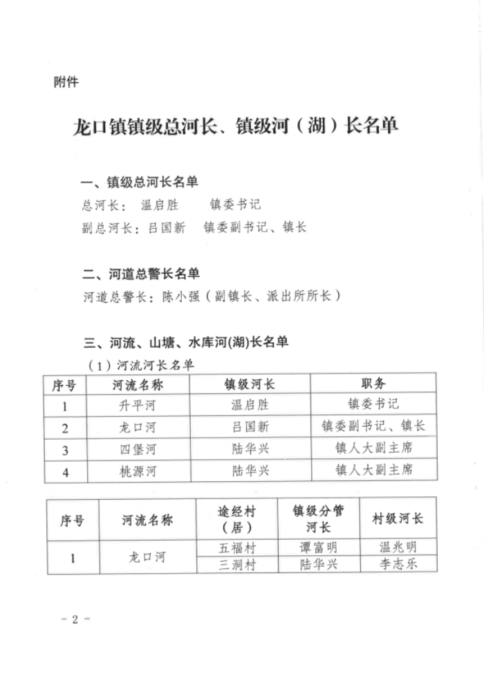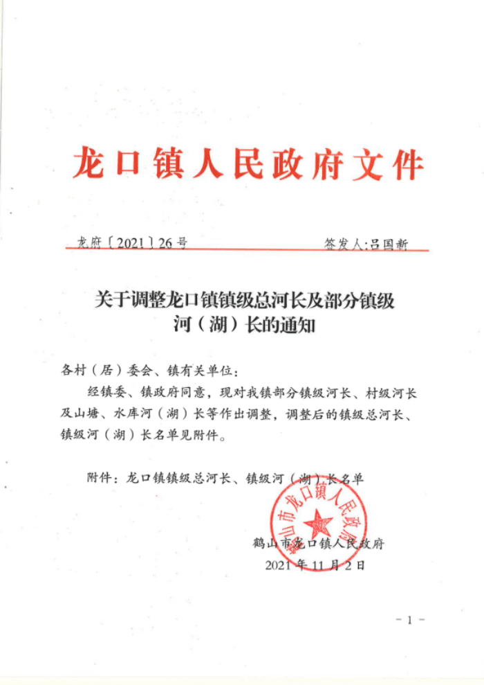 关于调整龙口镇镇级总河长及部分镇级河(湖)长的通知