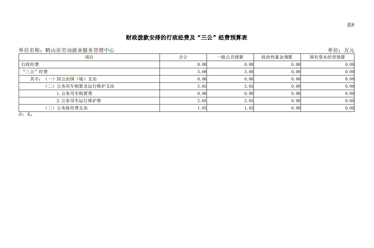 2024年西瓜视频 劳动就业服务管理中心“三公”经费预算表