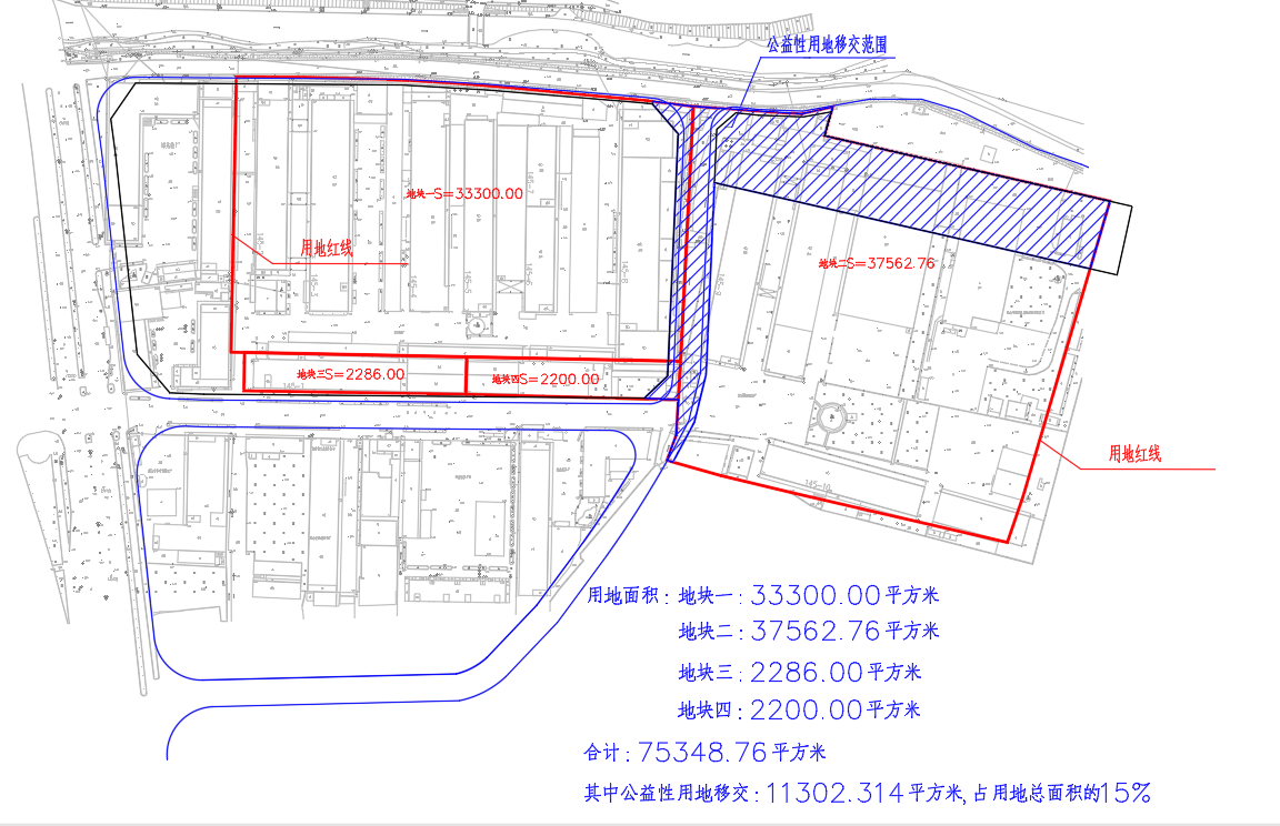 该项目需移交公益性用地11302.314平方米,详见改造单元示意图。