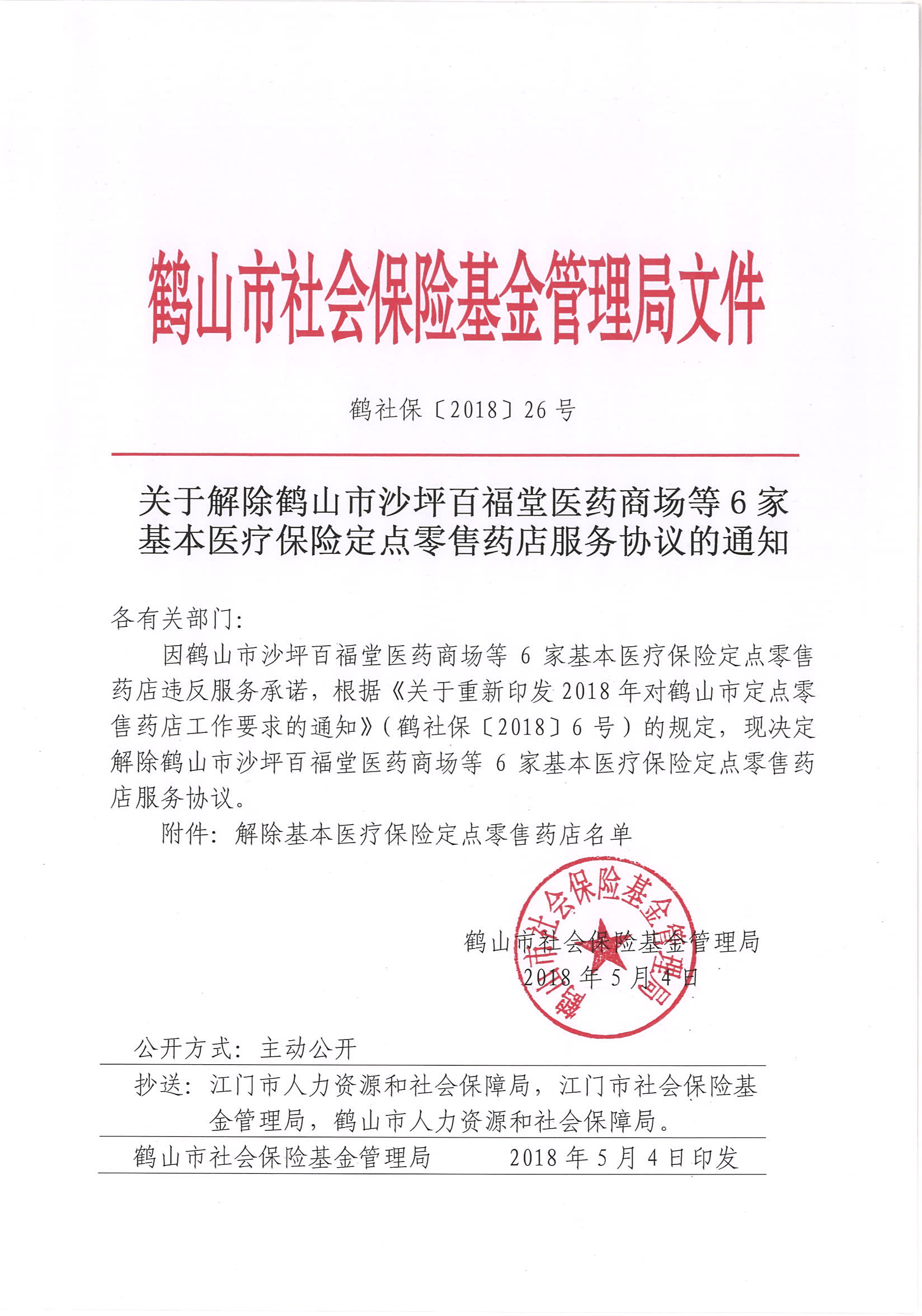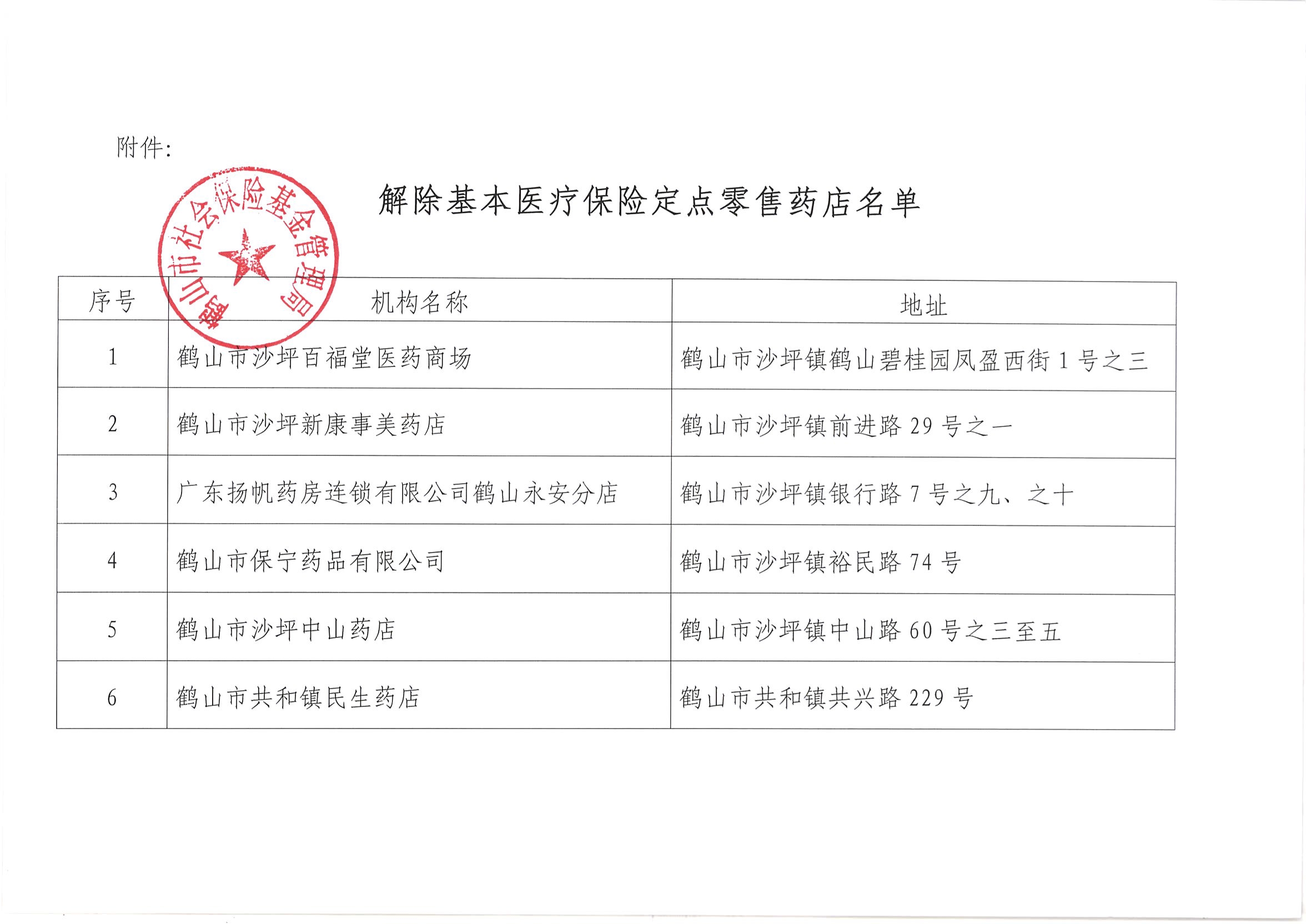 关于解除西瓜视频 沙坪百福堂医药商场等6家基本医疗保险定点零售药店服务协议的通知
