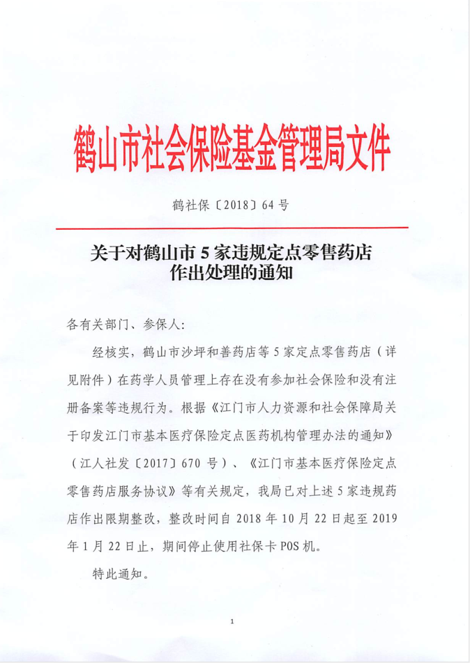 关于对西瓜视频 5家违规定点零售药店作出处理的通知