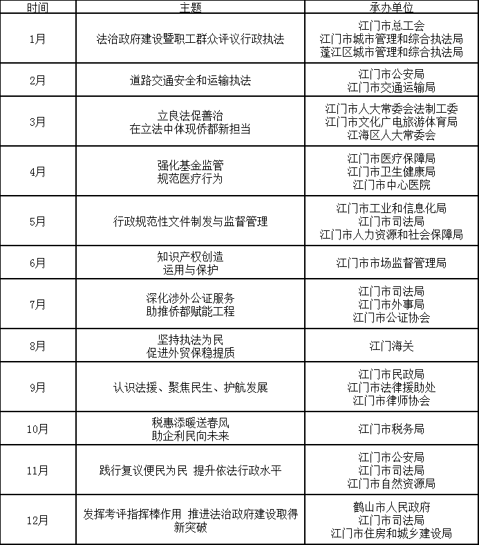 职工群众评议行政执法、一体化行政执法平台、全国人大法工委基层立法联系点、华侨华人公共法律服务国家平台、深圳国际仲裁院江门中心、行政复议改革、法治广东建设考评……这些法治热词,标注了2022年江门法治建设的发力点,串起了江门依法行政亮丽的主轴线,还原了江门法治政府建设全息样貌。