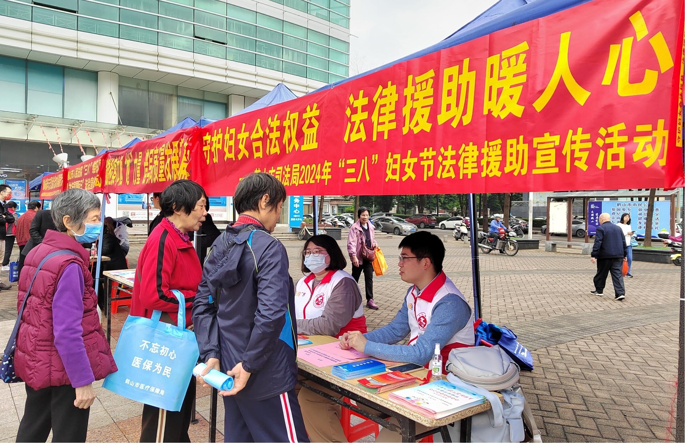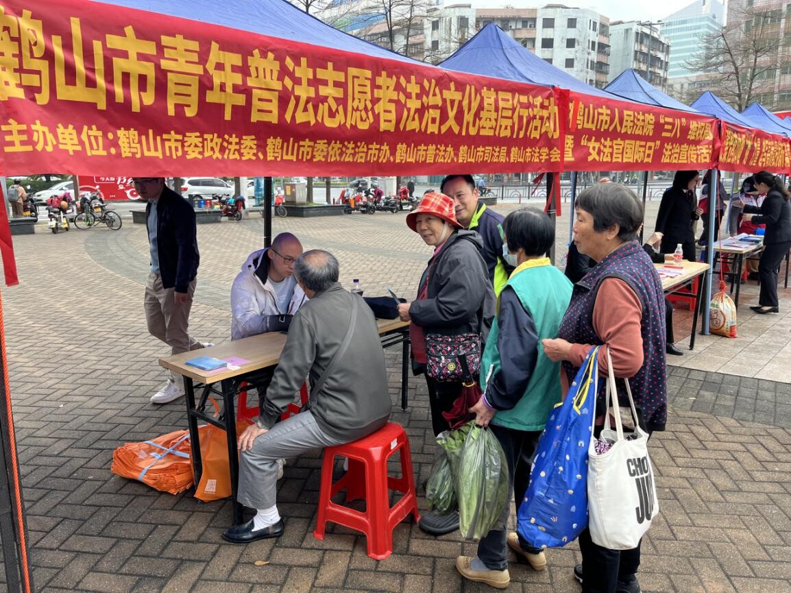 司法行政青年普法志愿者正在开展妇女权益法治宣传、法律援助咨询
