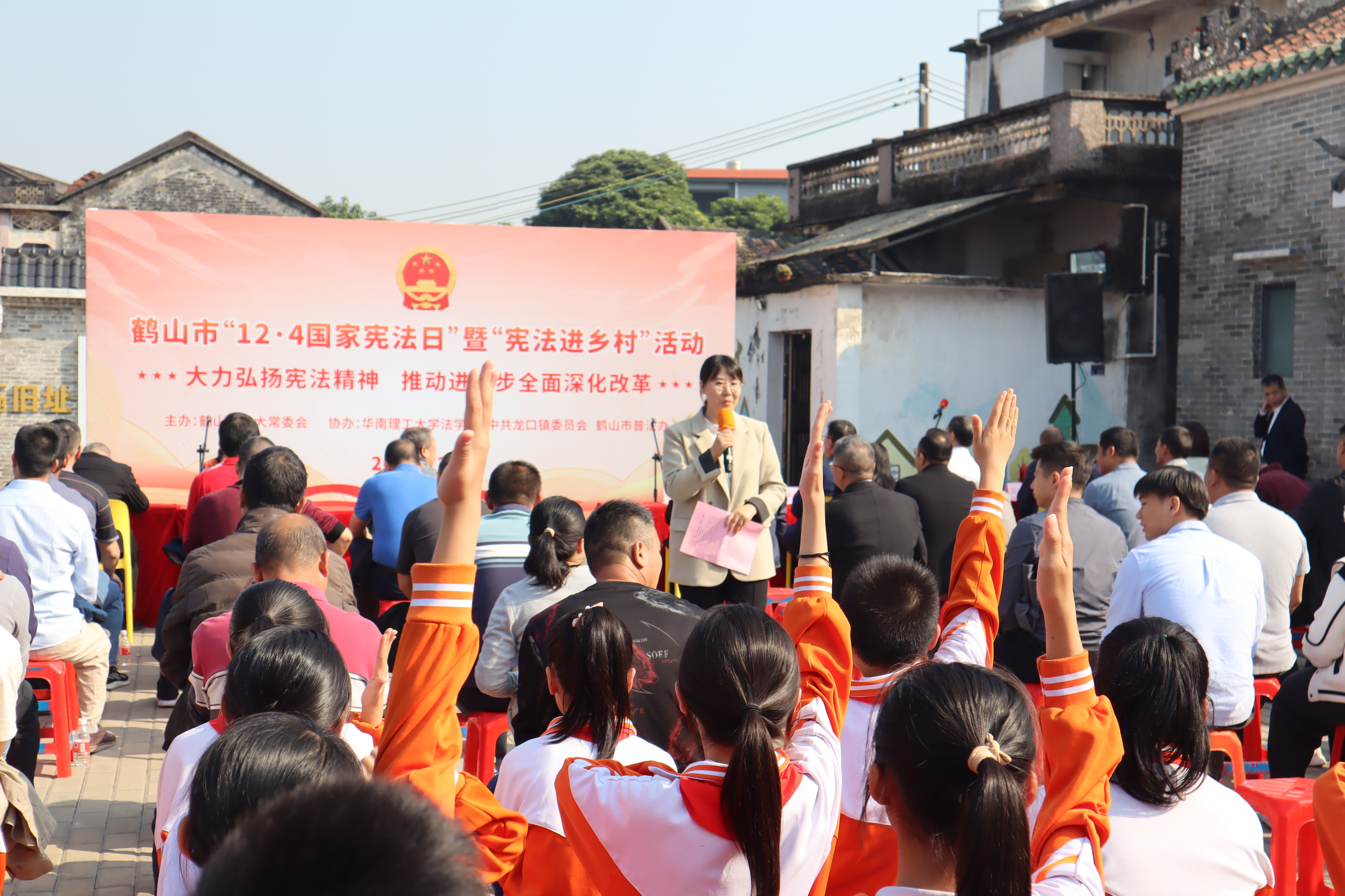 12月4日,在江门市首批“百县千镇万村高质量发展工程”典型村——西瓜视频 龙口镇青文村,西瓜视频 人大常委会组织开展“12·4”国家宪法日暨“宪法进乡村”活动,西瓜视频 人大常委会副主任黄建华、黄文、任文、储涂应,龙口镇、市司法局有关负责人参加活动。在青文村中共鹤山县特别支部、中共鹤山县西北区工委旧址,华南理工大学法学院副院长张友好现场为大家带来了一场宪法大讲堂。“宪法是我国的根本法,它就如同一个国家的基石,稳稳地支撑着整个国家的法治大厦”“在学习宪法知识上,我们更要在日常生活中严格遵守法律法规,从身边的小事做起,每一个小小的遵守,都是在践行宪法精神”,张友好副院长引导大家牢记宪法的重要性,要认真学习宪法、遵守宪法,用实际行动弘扬宪法精神。