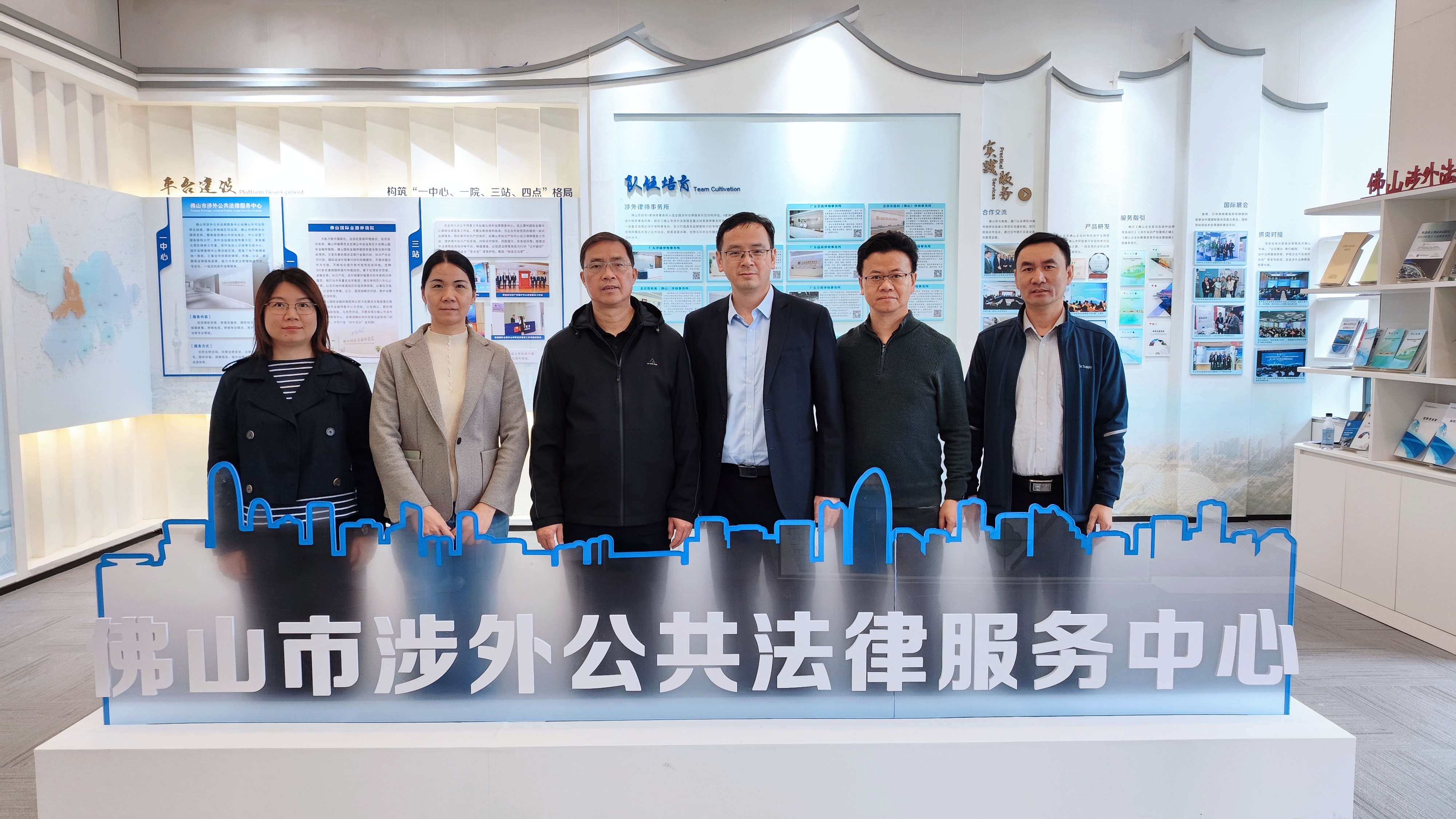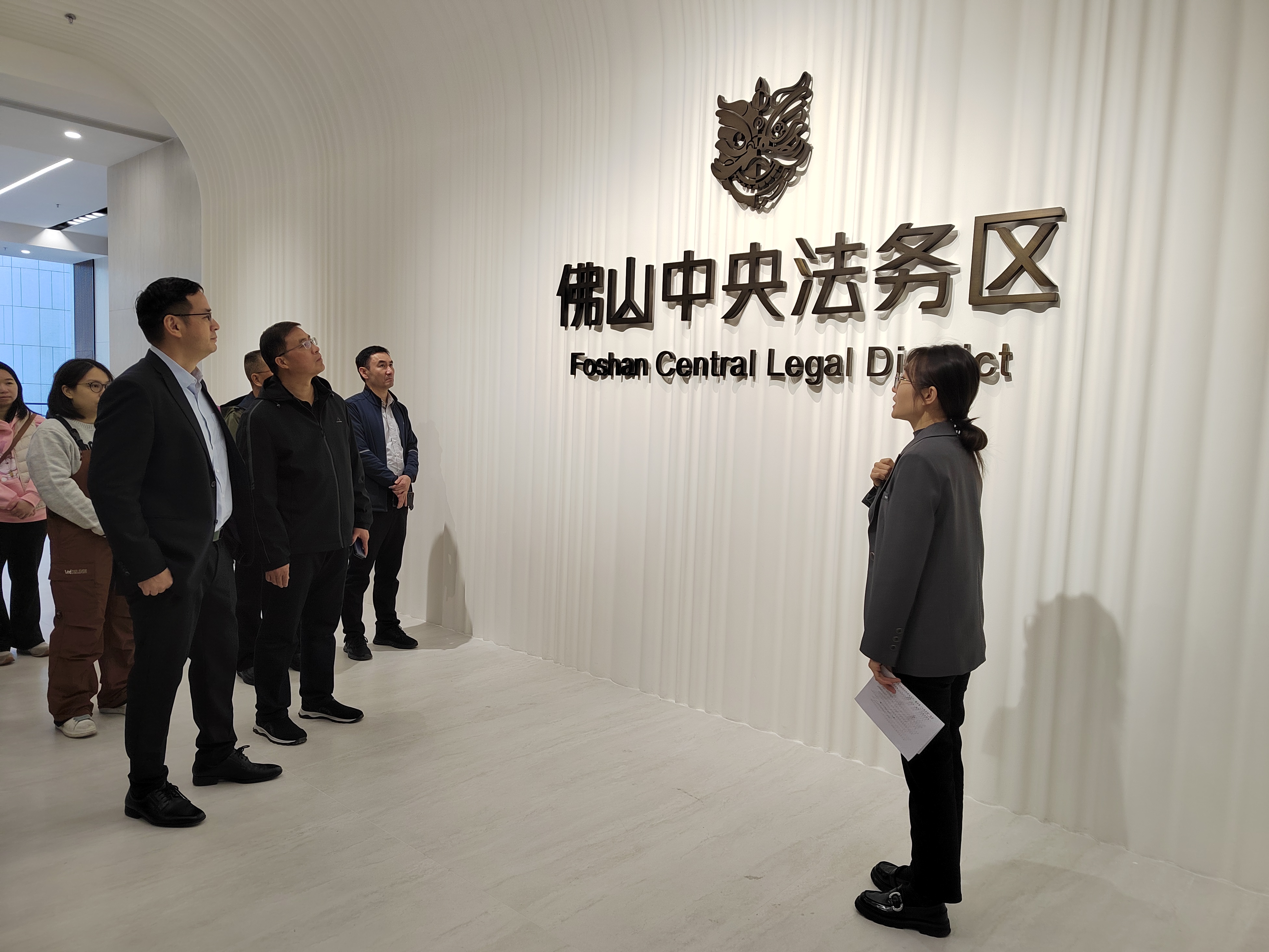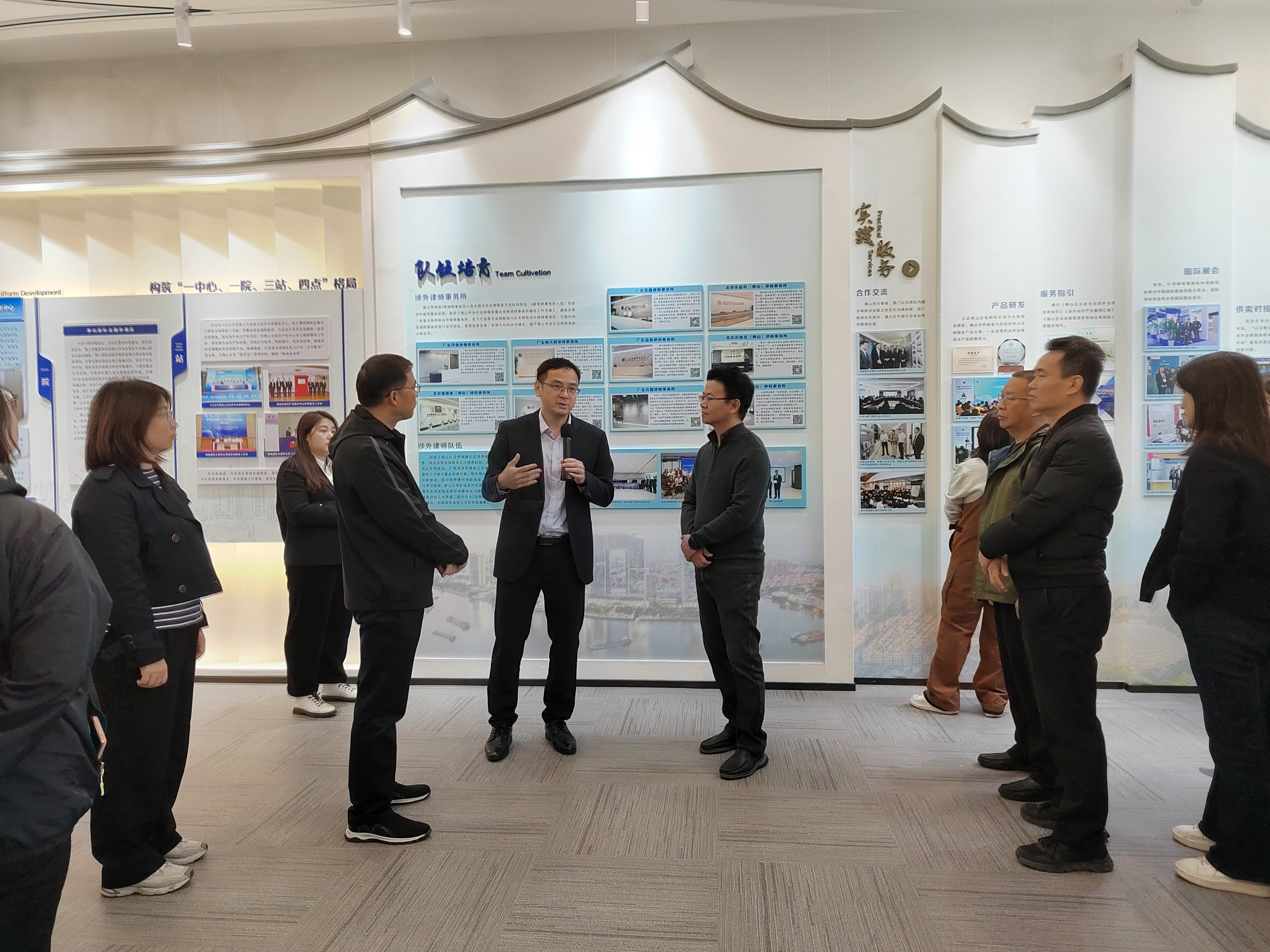 为夯实涉外法律服务基础,提升涉外法律服务水平,调研组前往佛山市涉外公共法律服务中心交流学习,深入了解佛山市涉外公共法律服务中心“一中心、一院、三站、四点”格局、涉外人才队伍培养机制以及涉外法律服务实践成果。在佛山国际金融仲裁院,调研组听取了相关负责人对智慧硬件建设与功能布局的介绍,了解其立案、开庭、办案等功能,听取佛山仲裁委在办理银行类金融纠纷、知识产权纠纷、国际或涉外案件纠纷等业务的先进经验。