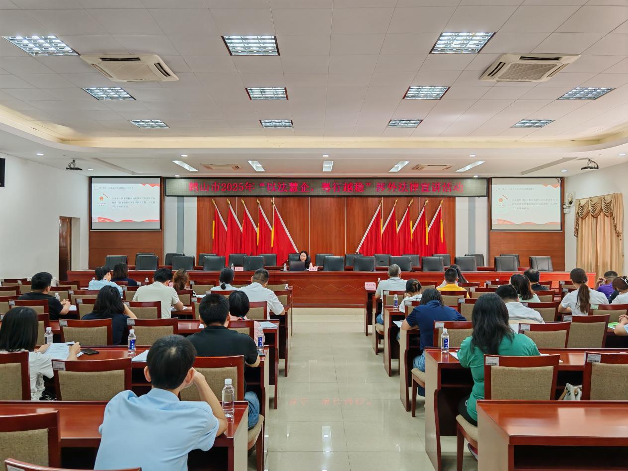 为更好地响应群众对公证的法律服务需求,市公证处不断创新宣传方式,提升公证服务的知晓度和影响力。近日,市公证处副主任兼公证员余颖琪和公证员陈曼清受邀做客FM1047鹤山电台《法治鹤山》栏目,为广大群众、企业普及公证法律知识。市公证处积极参加西瓜视频 2025年“以法慧企,粤行越稳”涉外法律服务活动,市公证处副主任、公证员黄务寅作为公证板块的主讲嘉宾,通过列举不同的涉外公证服务场景,详细讲解了涉外公证服务在保障企业合法权益、提升国际竞争力、促进跨国合作等方面发挥着不可替代的作用,为到场的60余家企业代表带来一场深入浅出的公证知识宣讲。