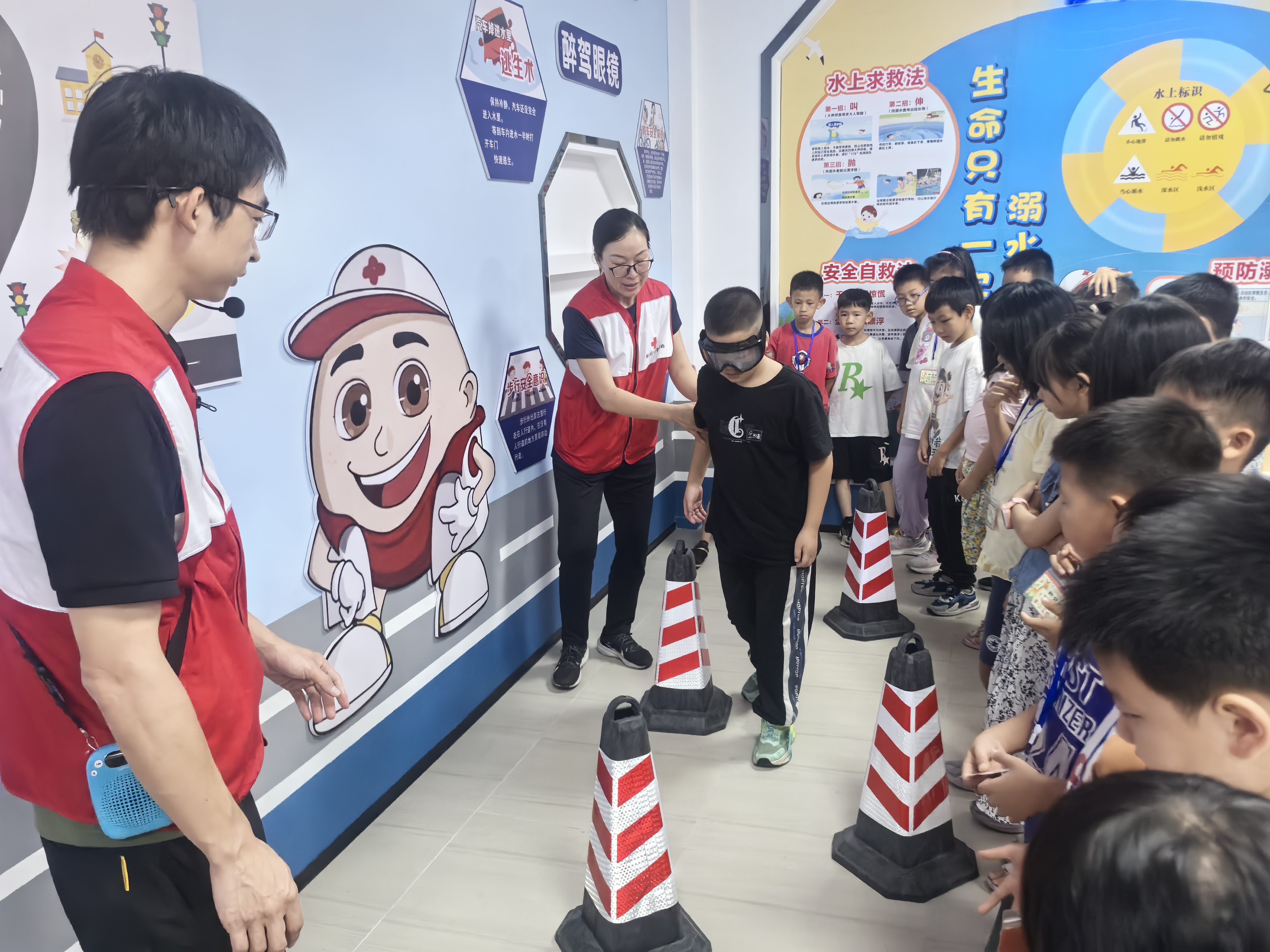 ▲孩子们在凤凰社区生命健康安全体验馆内学习逃生技能