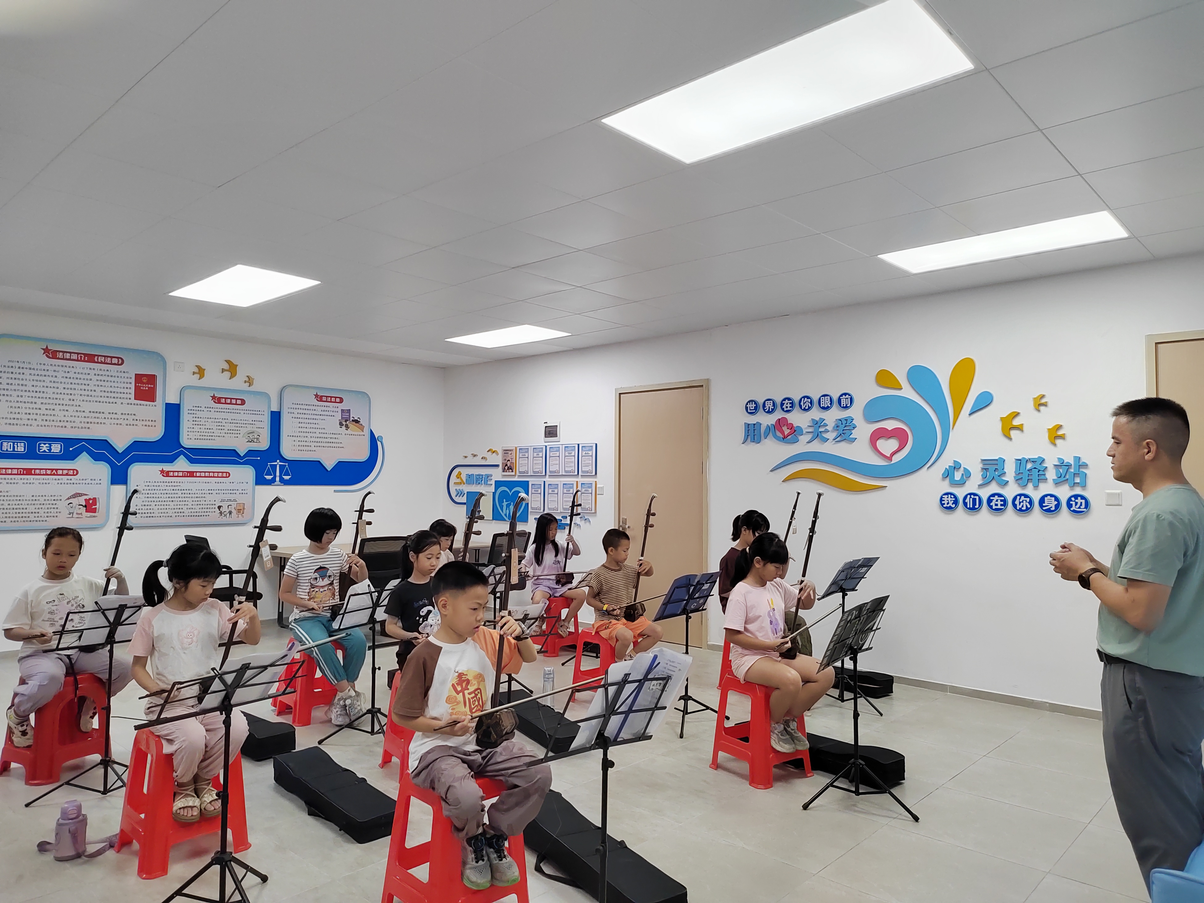 ▲雁山社区携手培训机构在心理咨询室开展二胡培训班