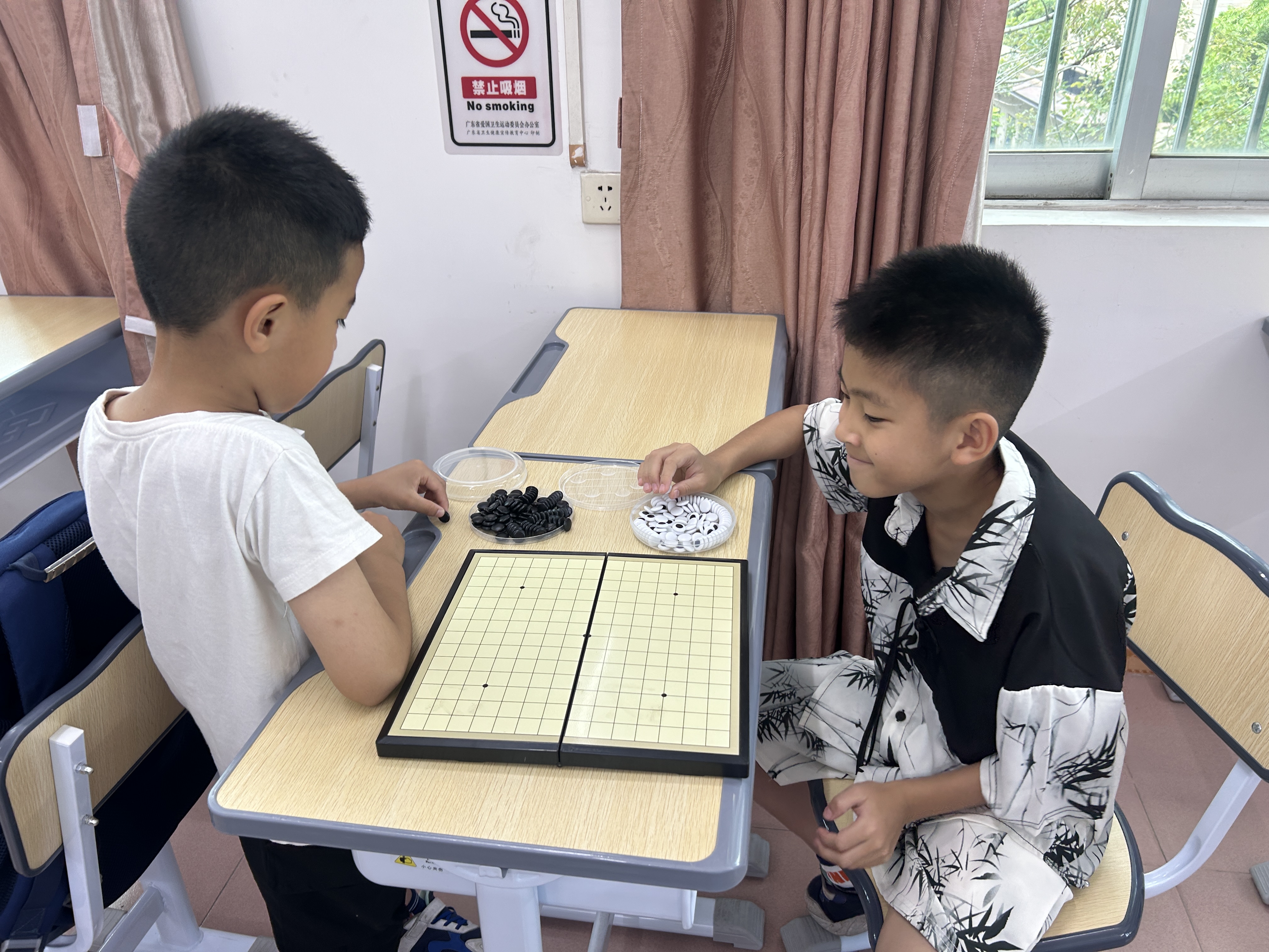 “我要堵这里。”“哈哈,我马上连成线啦!”“再来一局……”走进和平社区党群服务中心,五子棋擂台“硝烟渐起”,小棋手们两两对弈,时而凝神静思,时而举棋微笑,开启一场又一场黑白的较量。