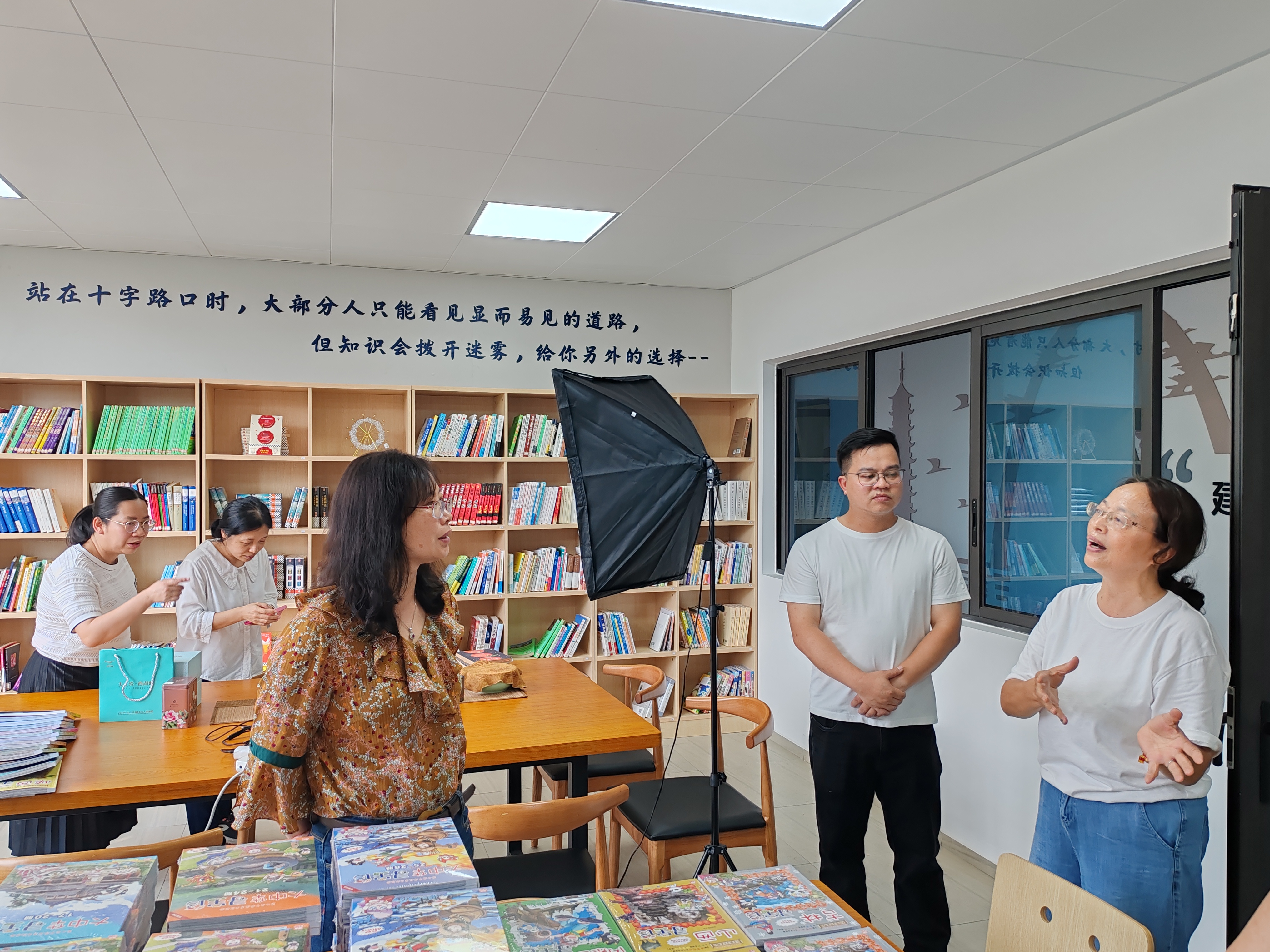▲凤凰社区居民李莉在七叶树下文祯图书中心介绍