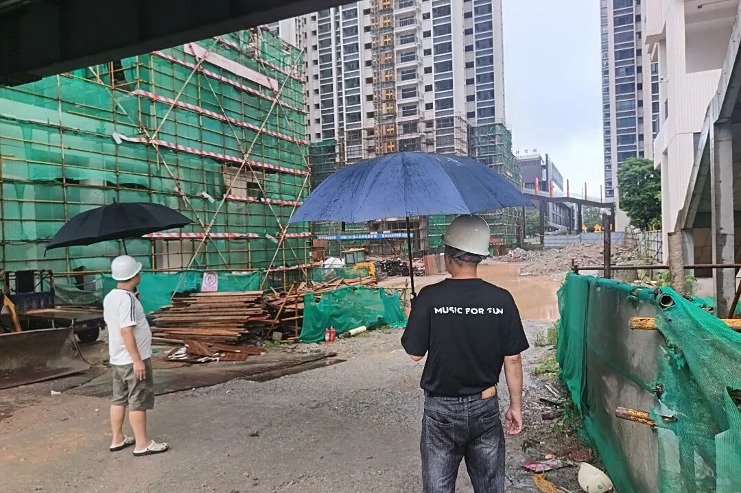 ▲巡查在建工地并做好防风防汛提醒
