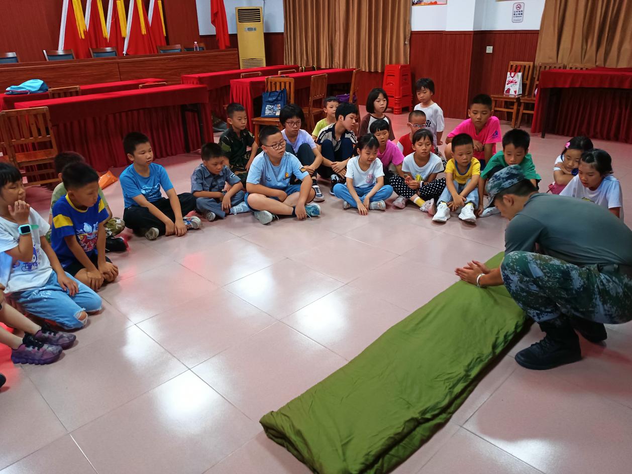 ▲辖区孩子们在和平社区组织的军训夏令营上学习叠被子