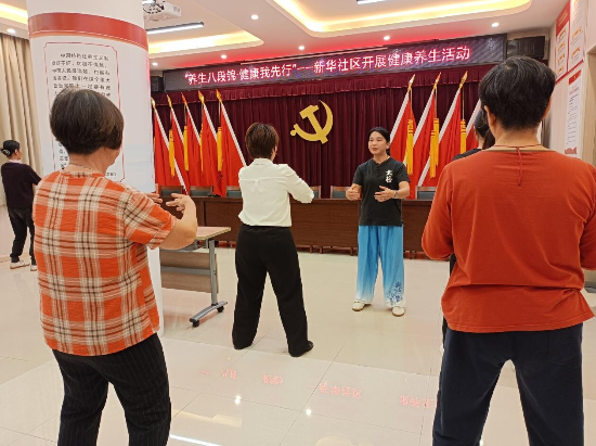 新华社区开展健康养生活动,组织居民群众学习八锦段