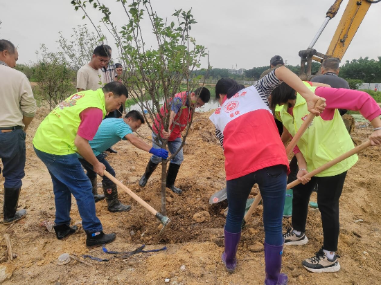 祥盛社区组织党员干部、志愿义工、热心群众植树,助力绿美生态建设