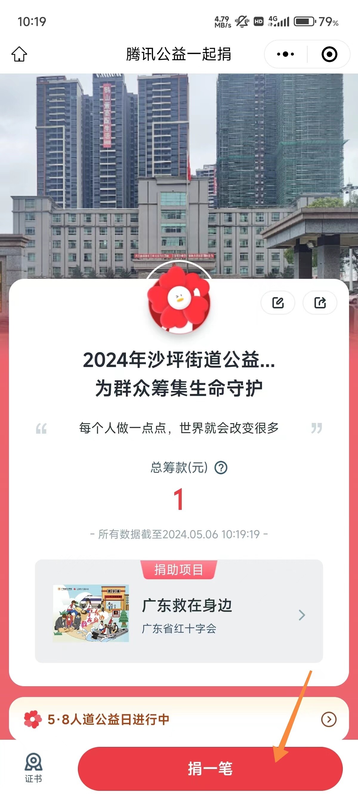 红十字会在“广东救在身边”公益项目下发起加入“一起捐”队伍邀请,本次所筹善款全部用于红十字应急救护、应急救援等相关活动。