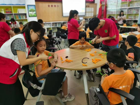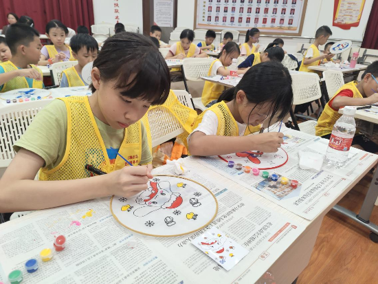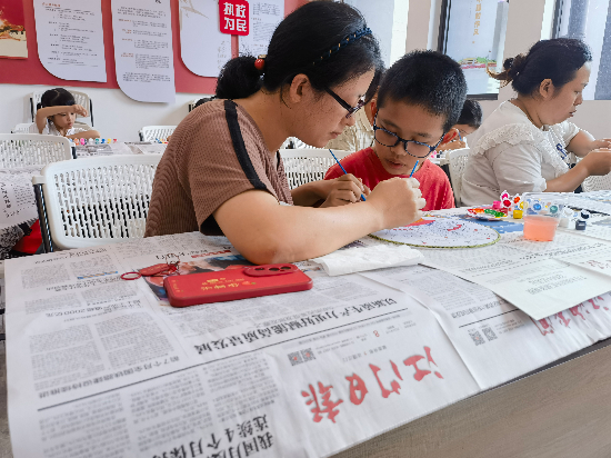 南山社区组织亲子家庭为团扇涂上五彩斑斓的颜色