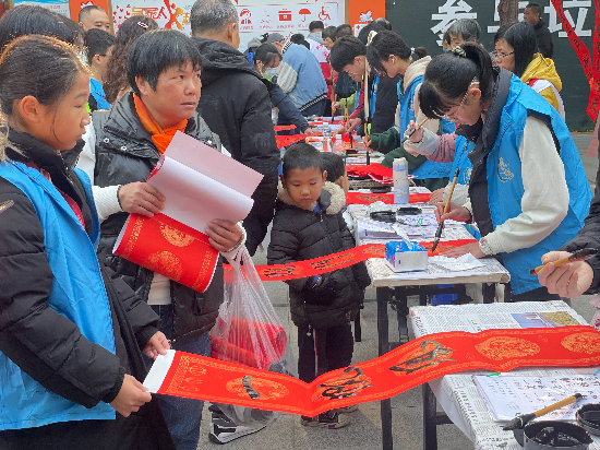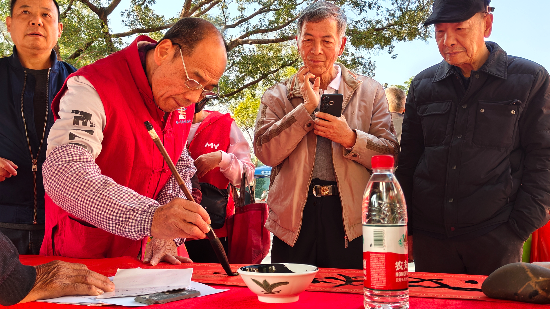 1月18日,南山社区在南山公园开展了一场“挥春送福”活动