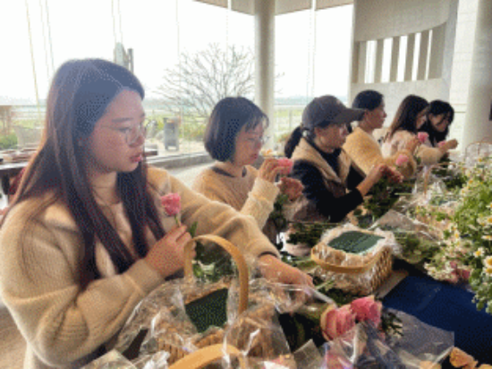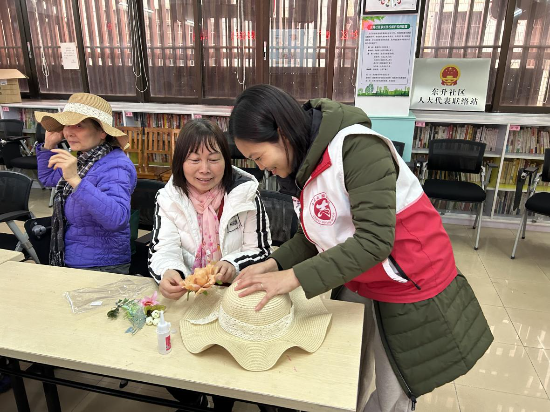 3月5日,义学社区开展“诗情花艺迎三八 义心聚力红新春”手工制作活动
