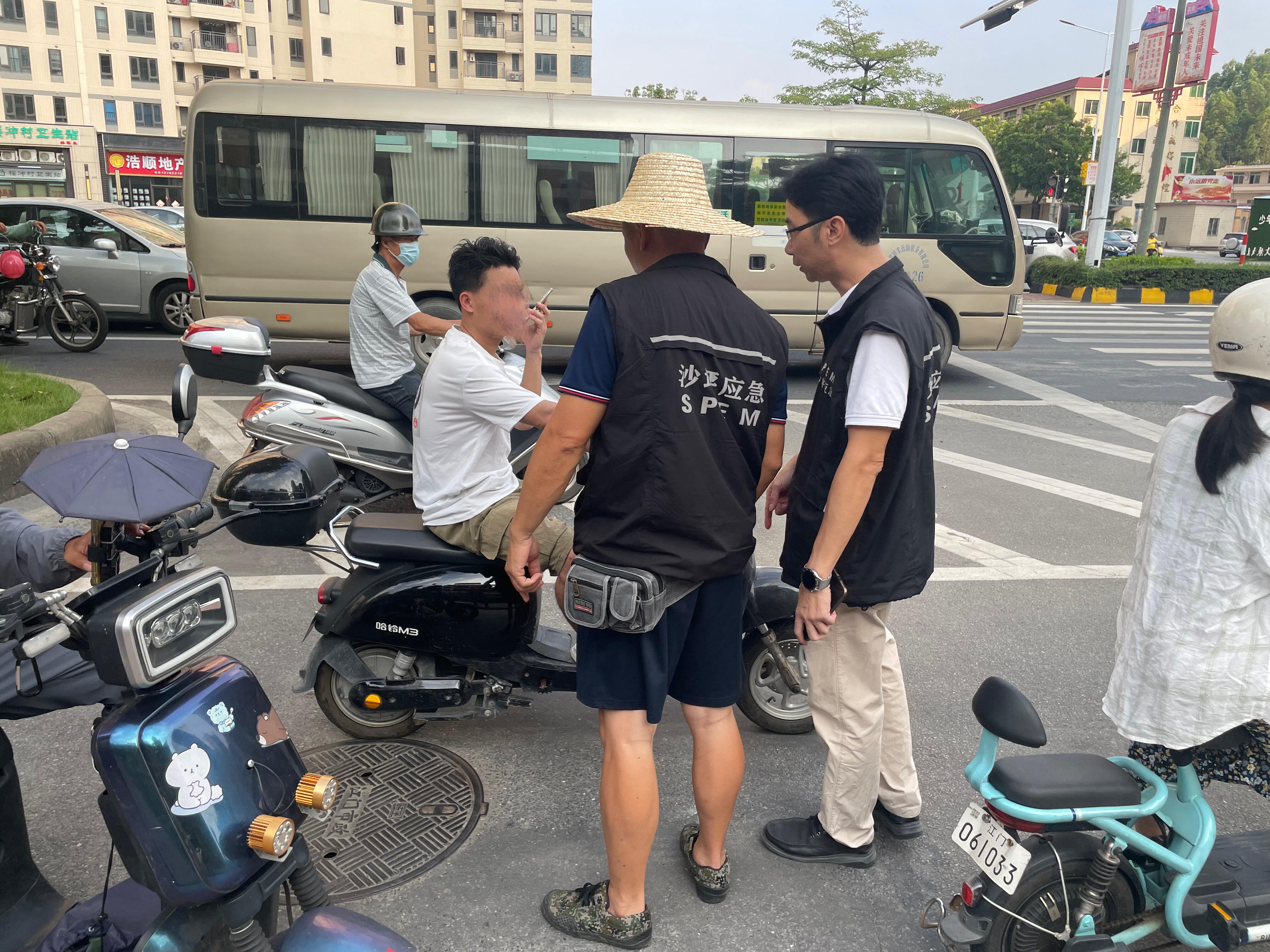 为保障市民的生命安全,提高道路交通安全意识,减少道路交通事故,沙坪街道党工委书记张雁威,党工委副书记、街道办主任李炎壮,党工委委员、街道办副主任熊颖昌带领应急办工作人员、专职消防队员、交警、派出所民警、各村(居)交通劝导员、网格员、志愿者等在各个重点路段、路口开展道路交通劝导工作,充分发挥“两站两员”的作用,落实“七个必上”工作要求,维持道路秩序,纠正交通违法,开展安全宣传,倡导相互礼让、文明出行新风尚。