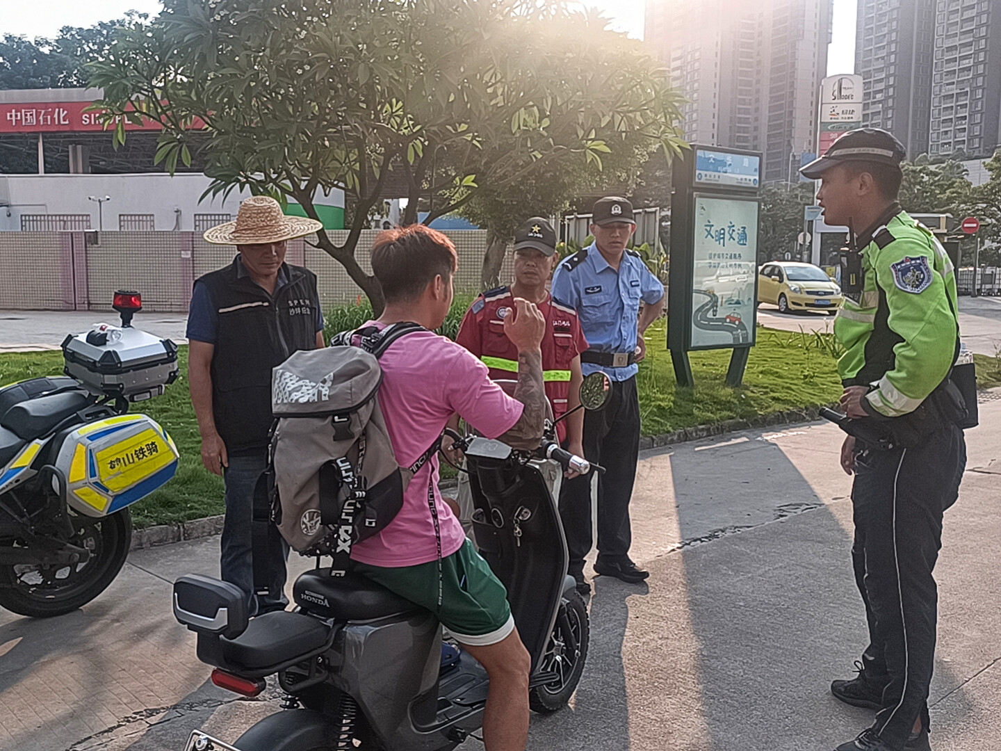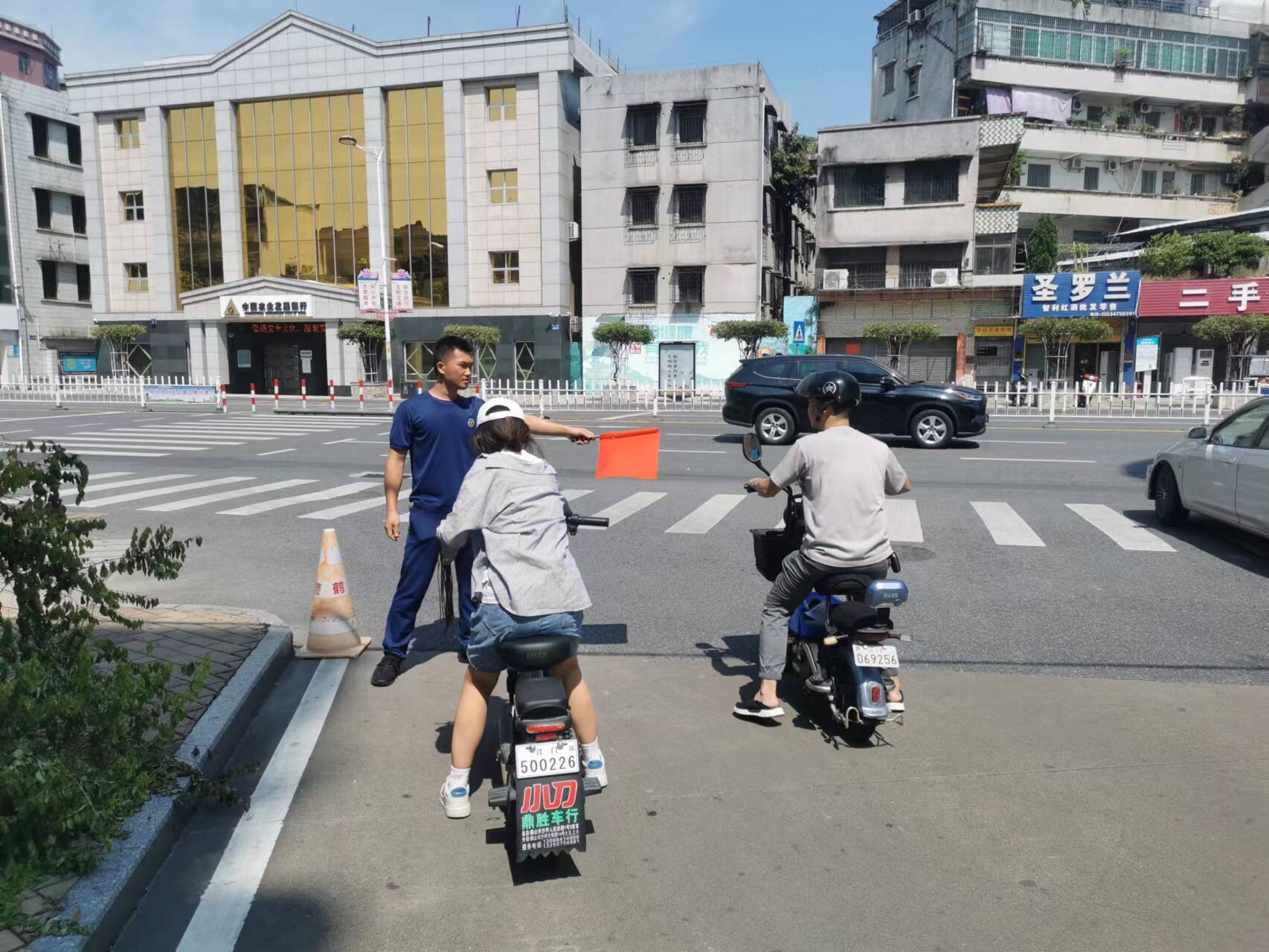 劝导纠正驾驶电动自行车不能接打电话、逆向行驶,过马路下车要推行