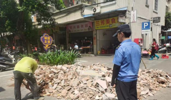 对重点道路、主干道沿线开展常态化检查,沙坪街道通过沿街宣传等方式,落实商铺“门前三包”责任,督促在建商户及时清理门口建筑垃圾,并向商户普及关于建筑垃圾及装修施工的相关规定,确保生活垃圾、建筑垃圾及时清运无死角。