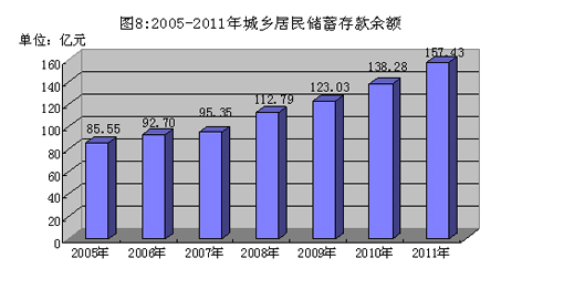 全市金融机构人民币各项存款余额231.00元,比年初增长7.1%,其中:城乡居民储蓄存款余额157.43亿元,比年初增长13.9%。金融机构贷款余额141.72亿元,比年初增长23.9%。
