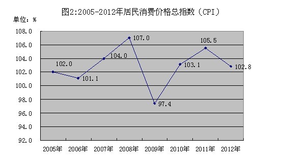 全年居民消费价格总指数为102.8,上涨2.8%。 分类别看,食品类上涨5.6%,烟酒类上涨4.7%,衣着类上涨1.3%,家庭设备用品及维修服务类上涨1.3%,医疗保健和个人用品类上涨1.2%,交通和通信类持平, 娱乐教育文化用品及服务类上涨2.3%,居住类上涨0.8%。